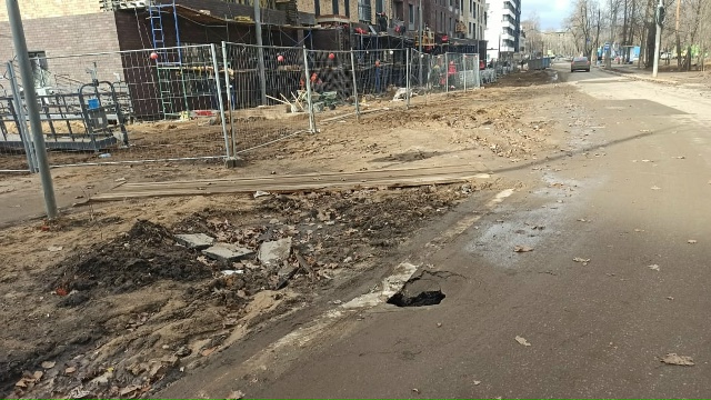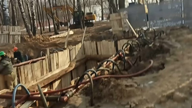 Работы по прокладке коммуникаций канализационной сети велись и в зимний период времени и продолжаются в настоящий момент, укладка сопровождается откачкой грунтовых вод.