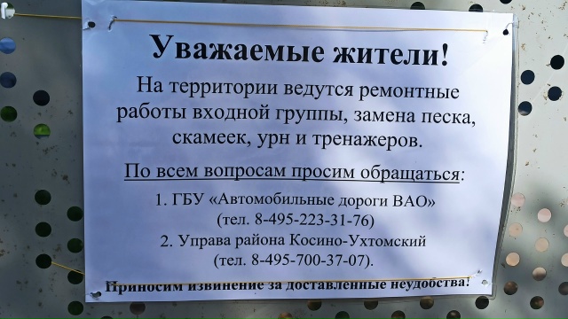 Повесили листочек По всем вопросам обращаться в ГБУ Автодороги, или Управу. А ответственного так и нет.