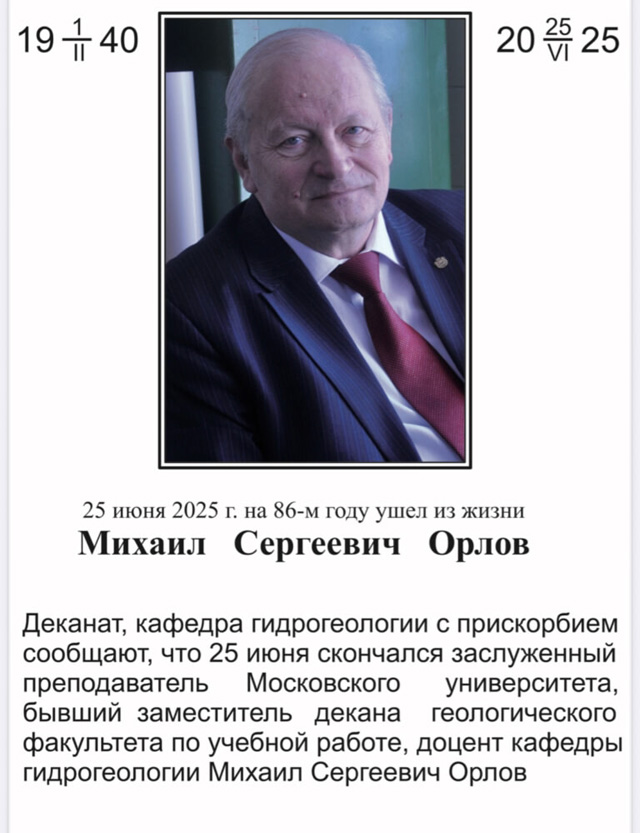 Ушел из жизни Михаил Орлов25 июня 2025 г. на 86-м году ушел из жизни Михаил Сергеевич Орлов.